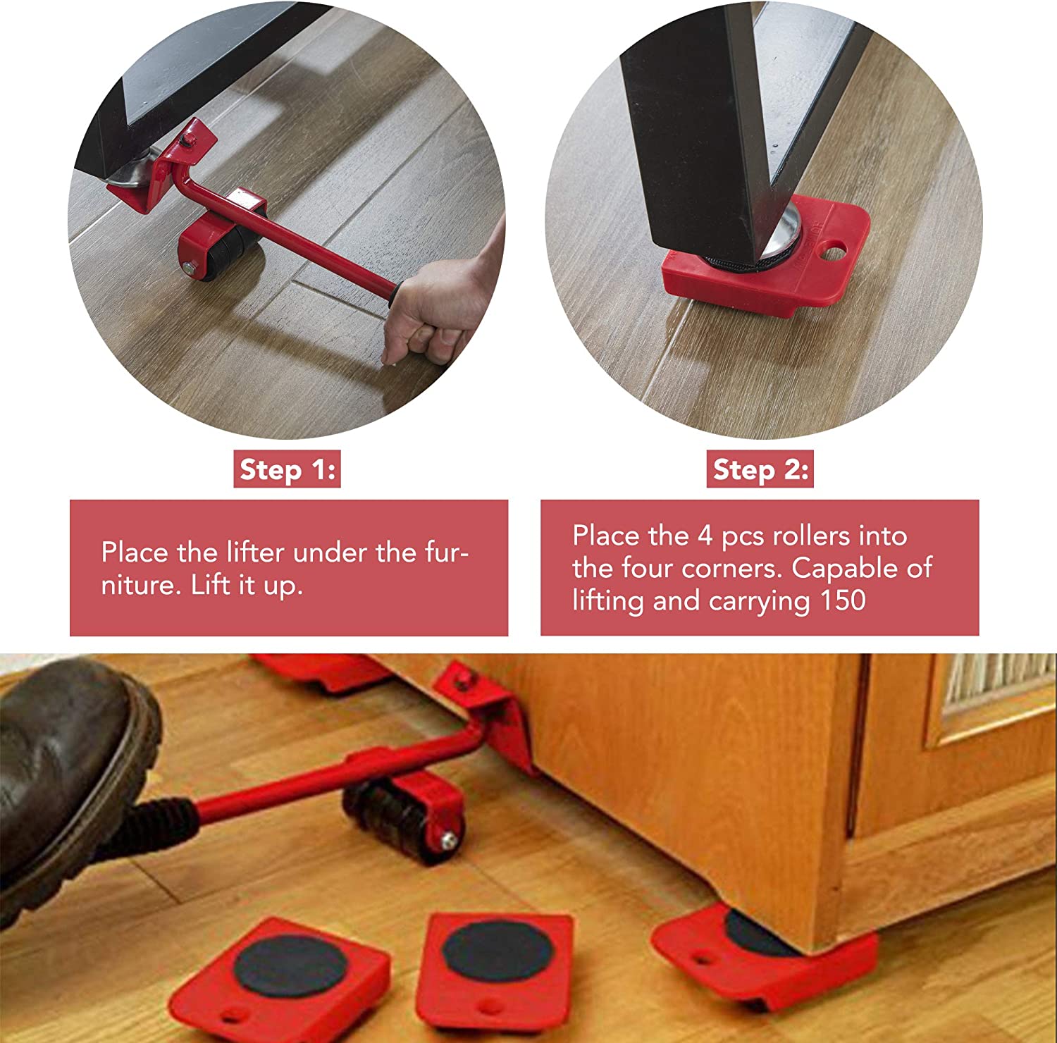 🧿EASY TO USE – Place the lifter under the furniture. Lift it up. Place the 4 pcs rollers into the four corners. Capable of lifting and carrying 150 KG/330Lbs. Easily lifts furniture without hurting your back.