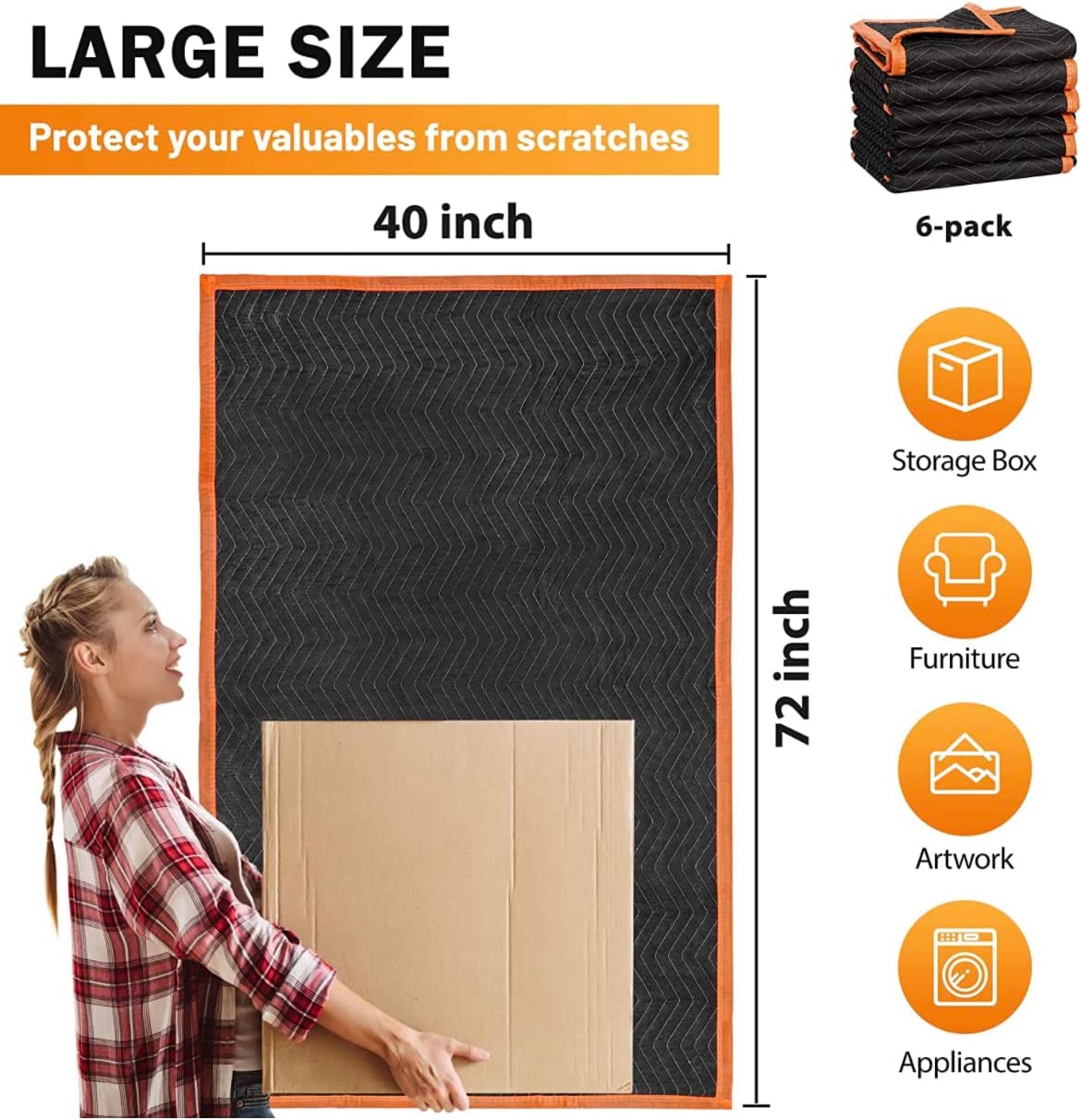 Professional-grade: Oversized, 72" x 40" premium quality moving pads that provide exceptional damage protection from scratches, nicks, dirt, and moisture when moving or transporting furniture, appliances, and other valuable large items