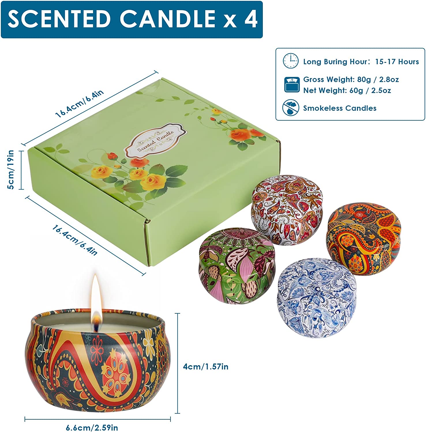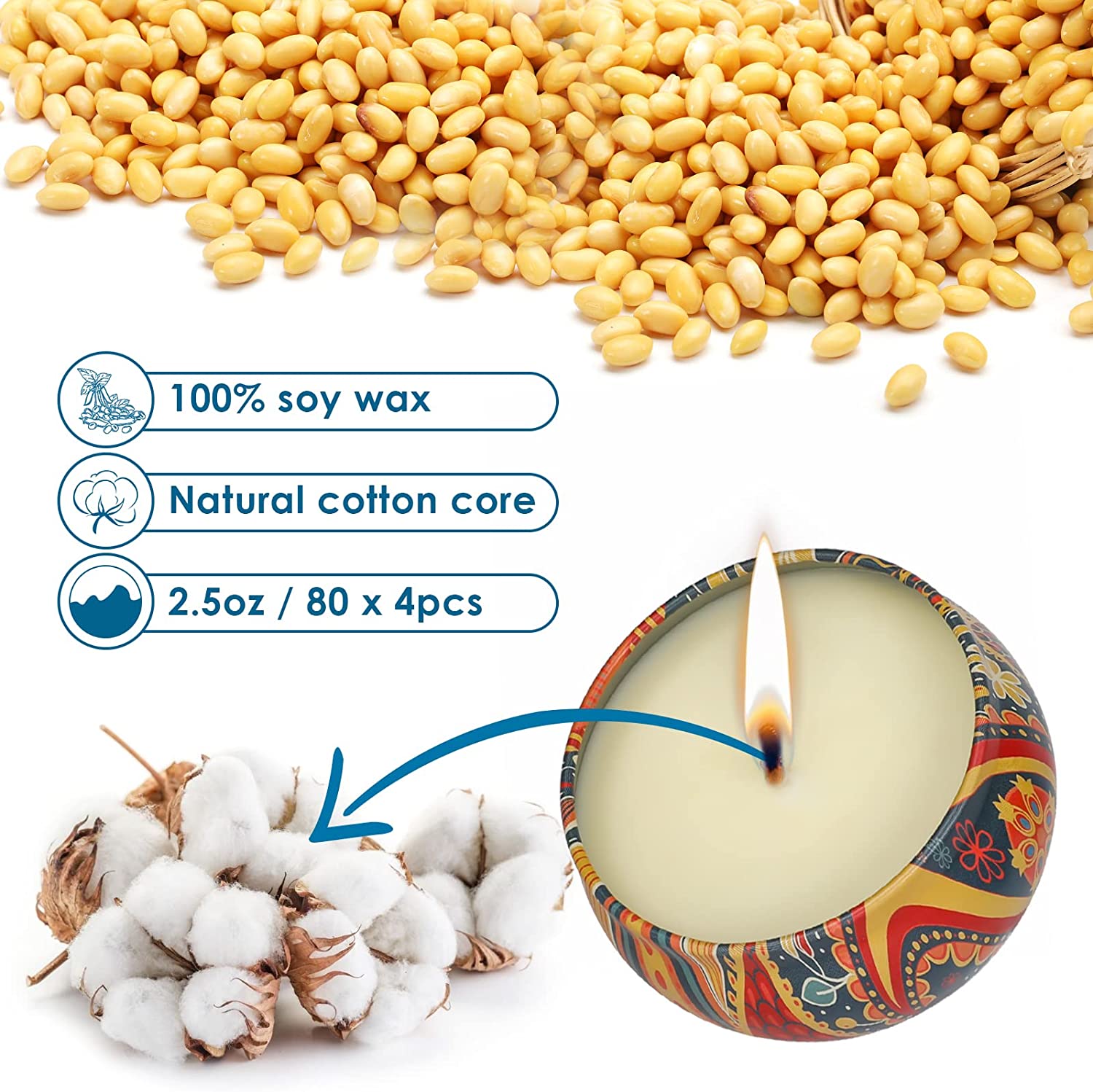 -❀Long Burn Time:essential Oil candles are 2.5 ounces and burn up to 15-17 hours each; up to 60-68 hours total per set.Trim soy candles wicks to help increase the burning time.Compact candles 2.59 x 1.57 inches are perfectly size,you can take it wherever you go.Enjoy the beautiful jar candles designed to compliment any home decor.